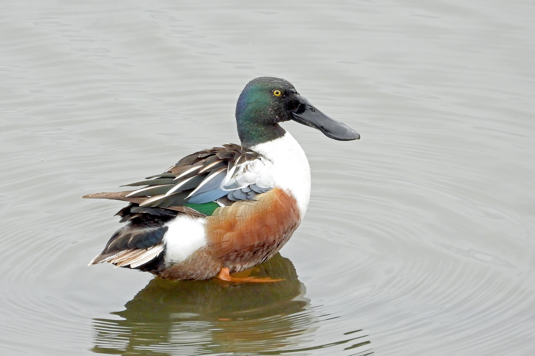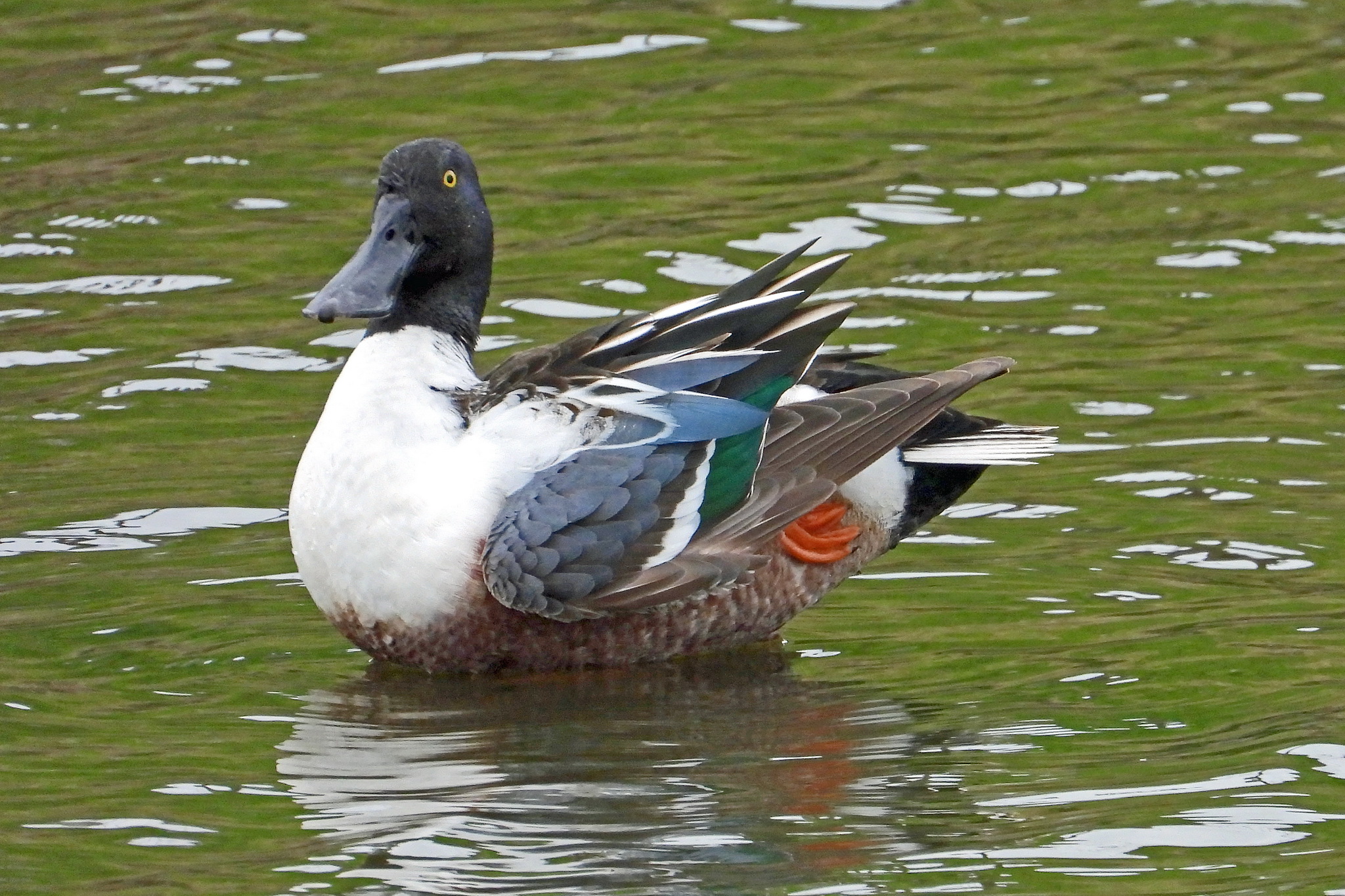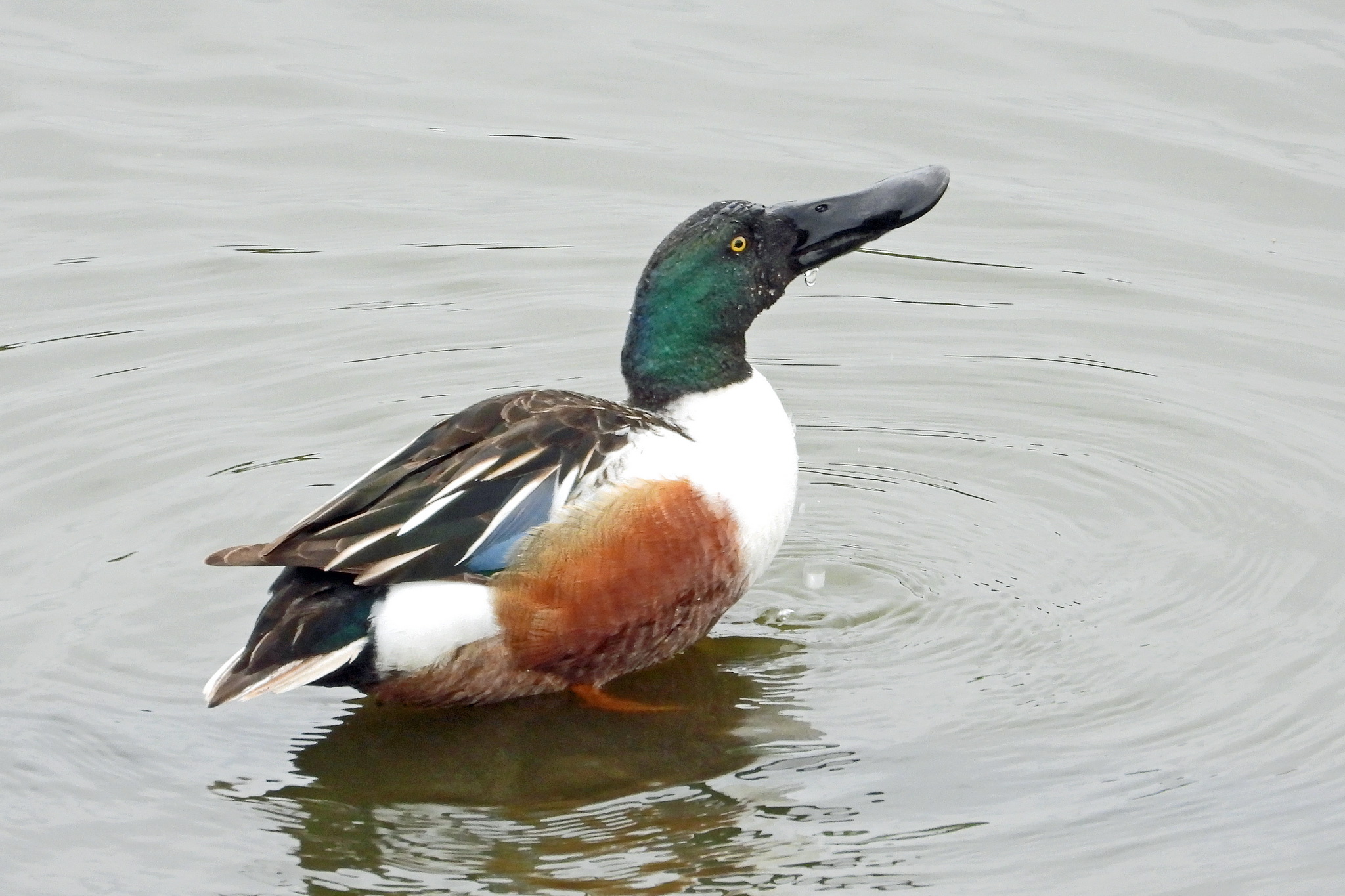 「ハシビロガモ」のオスが居ました。