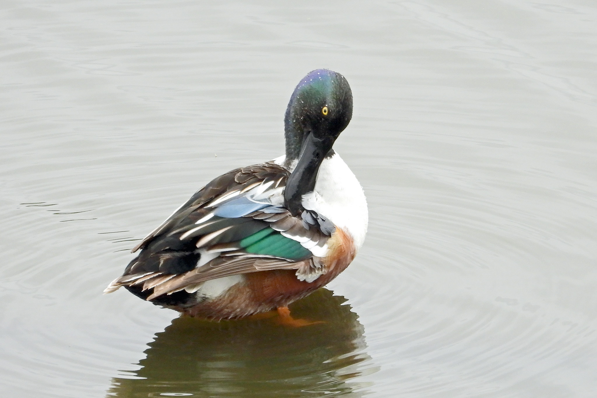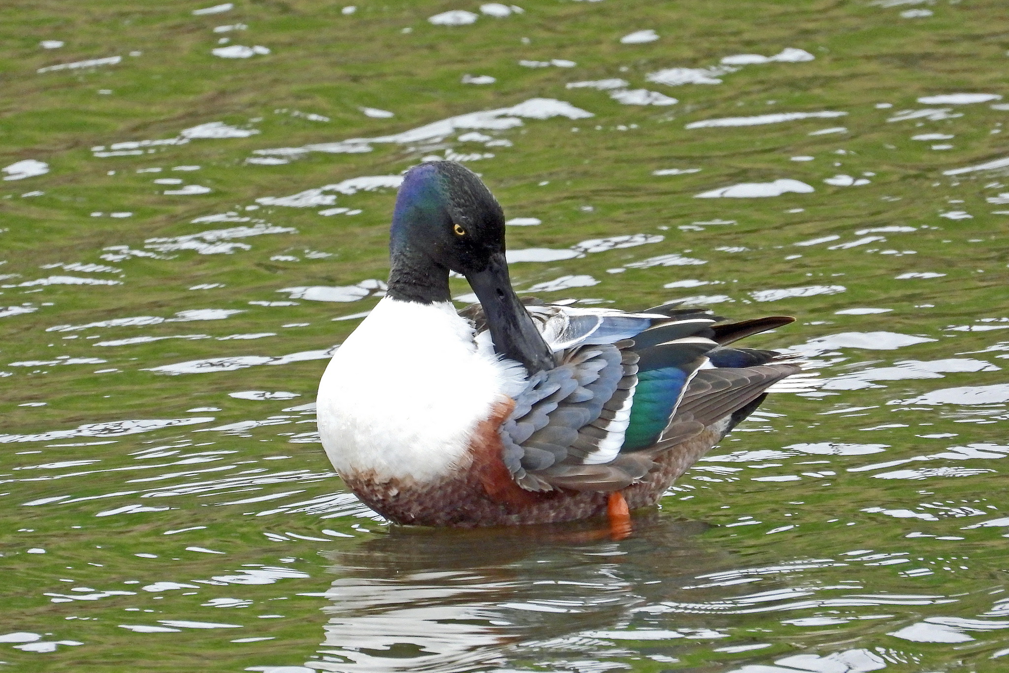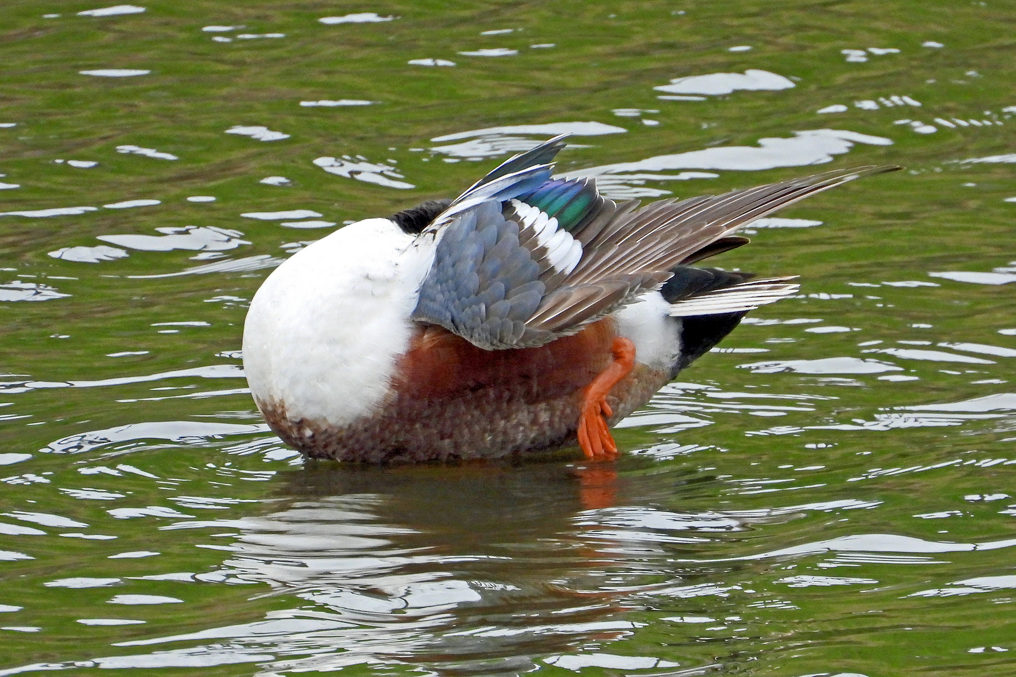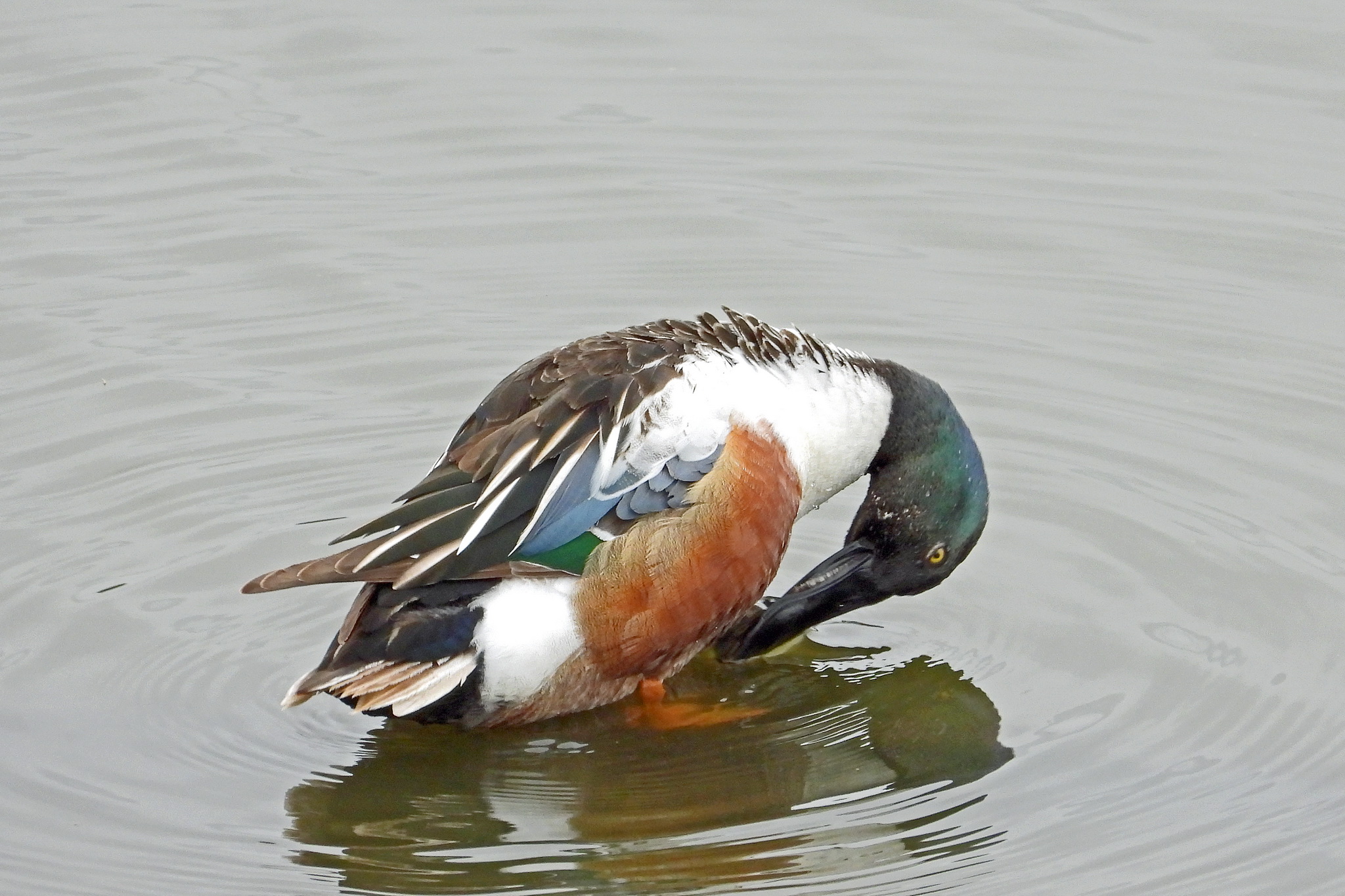 「ハシビロガモ」が羽のお手入れです。