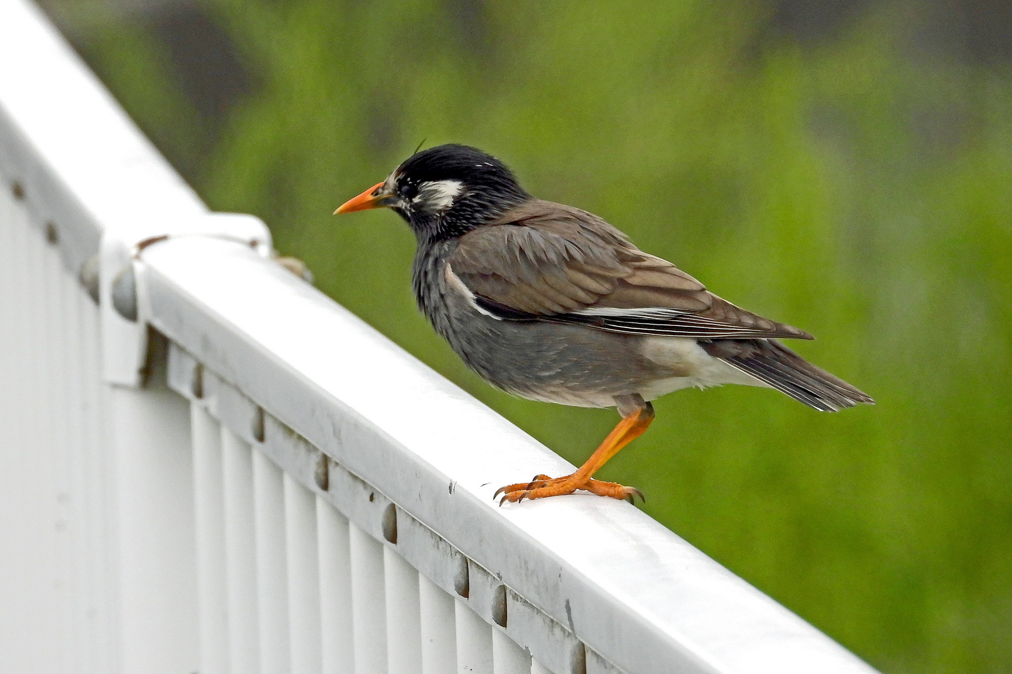 フェンスに「ムクドリ」が留まりました。