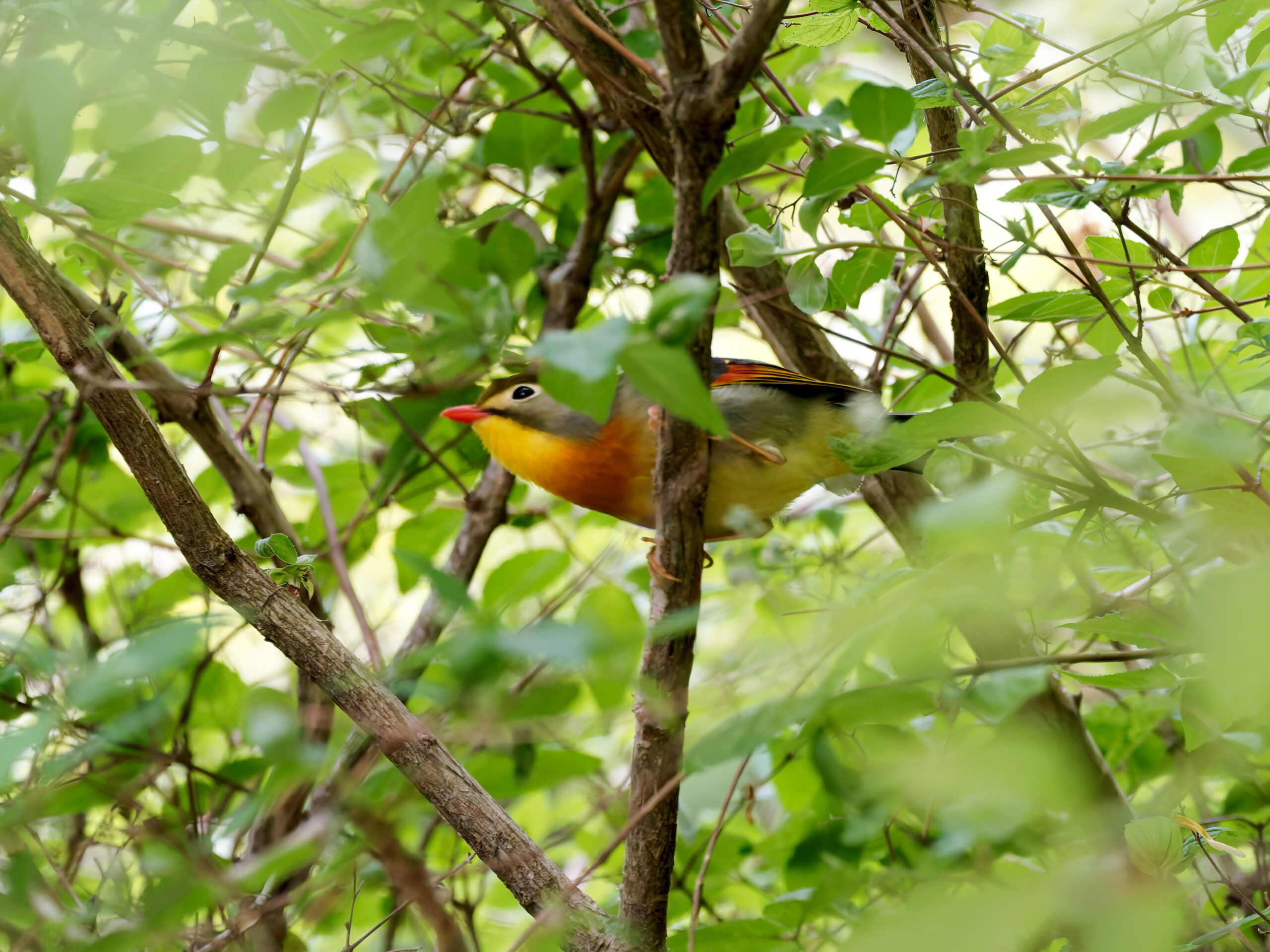 カワガラスには会えず、最初に会えたのは、外来種のソウシチョウ、初見です。