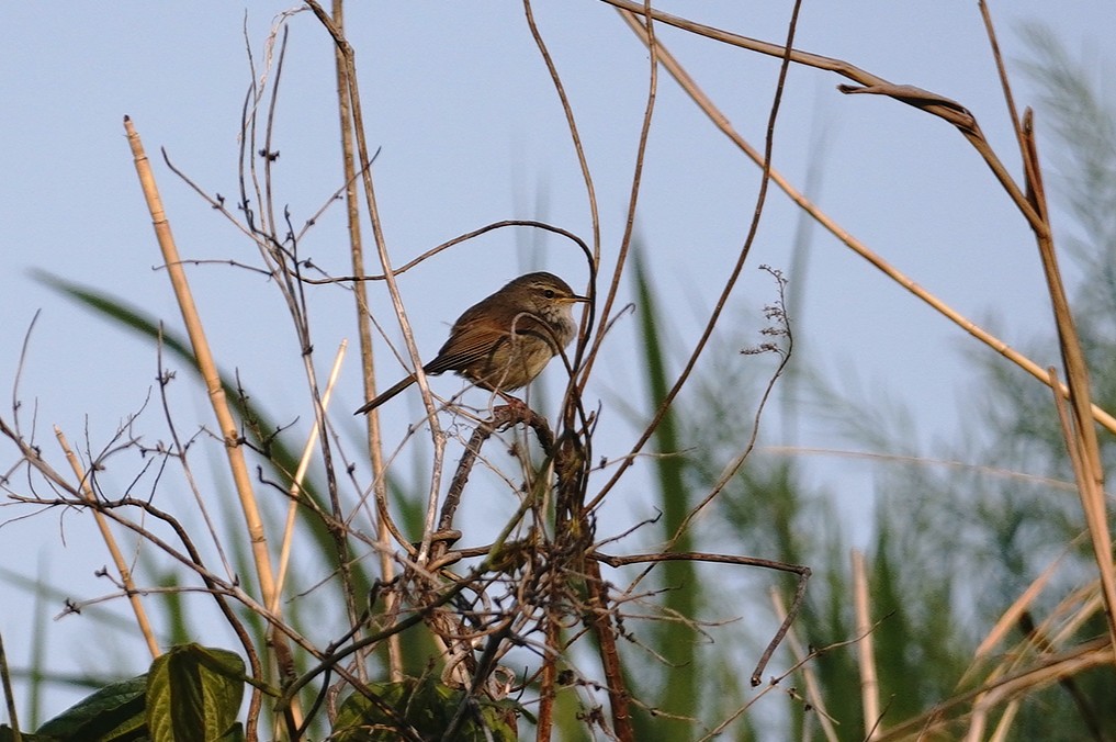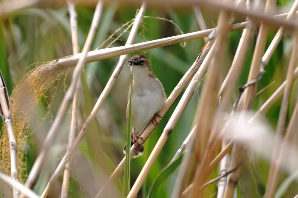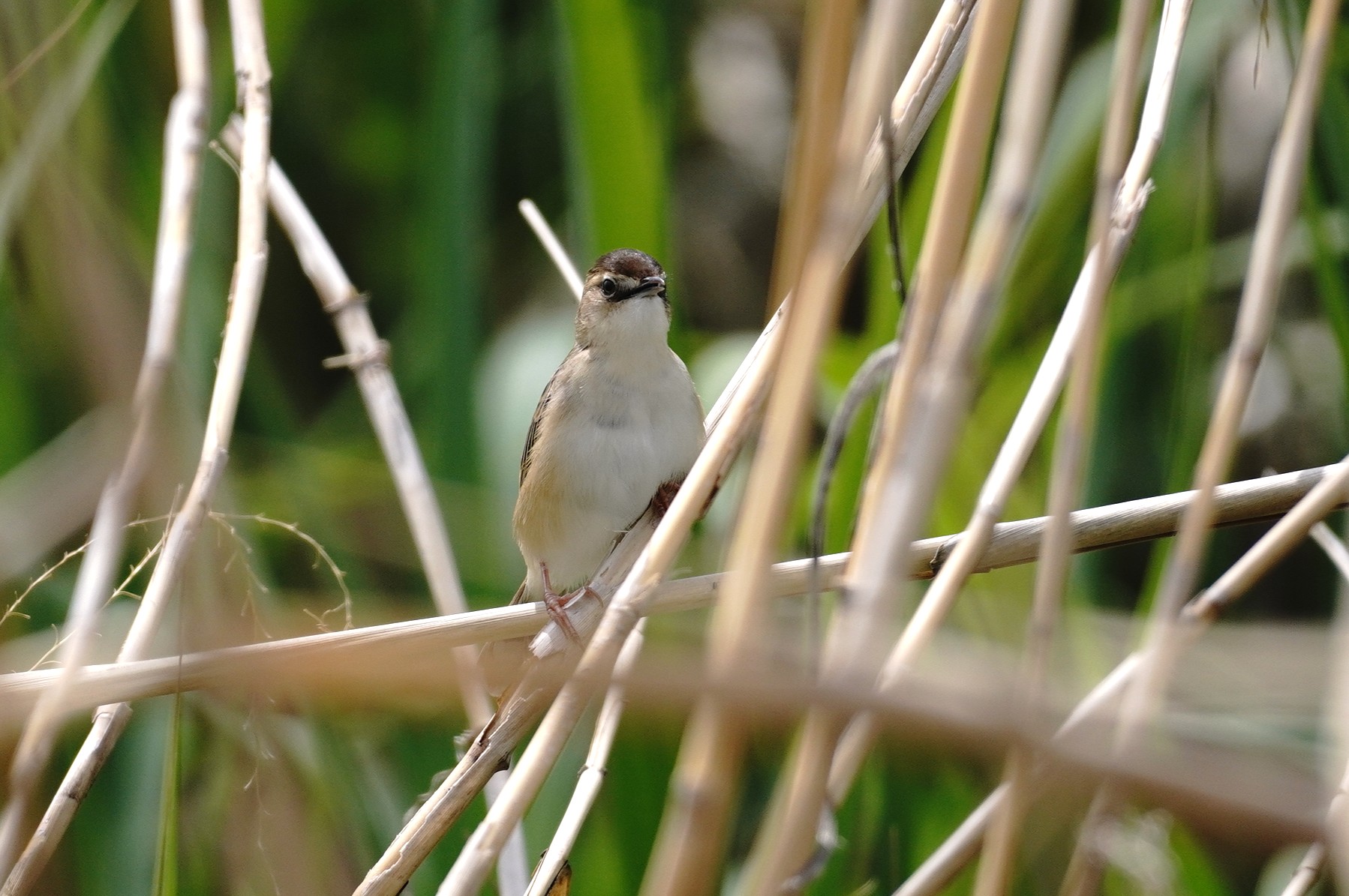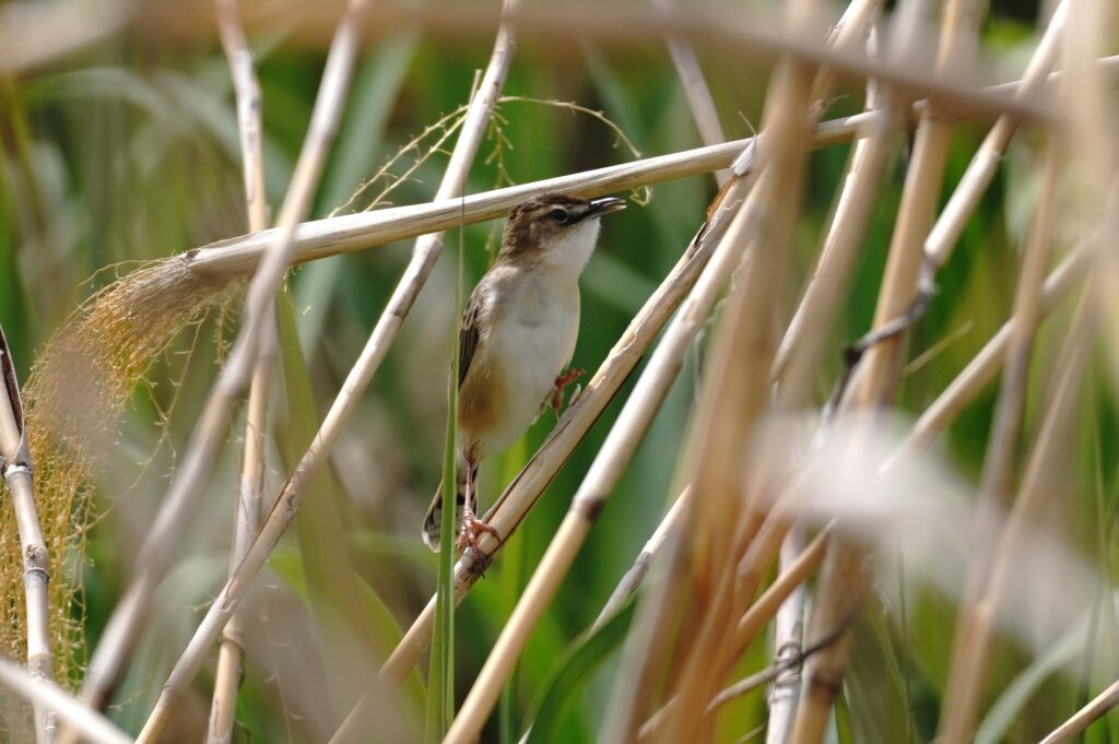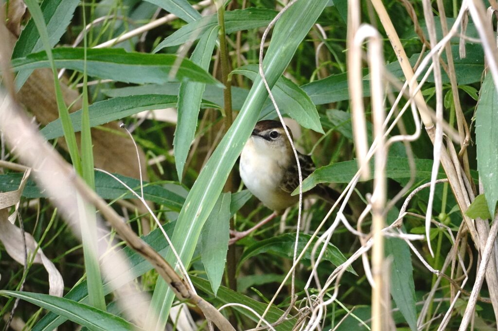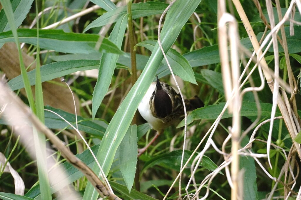 セッカが朝から元気にヒッヒッと鳴きながら、公園内を飛び回っていました。繁殖期になり縄張り宣言や、葉っぱや蜘蛛の糸を使って巣作りもするそうで忙しそうです。今鳴いているのはオスで、巣を複数作ってメスの来るのを待っているとか。ここだけでオスは2羽見かけますので、競争も激しいのではと心配してしまいます。