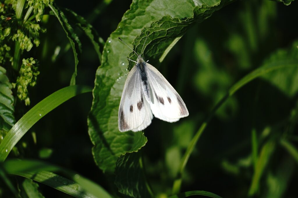モンシロチョウ ここで雨宿りしていたのでしょうか