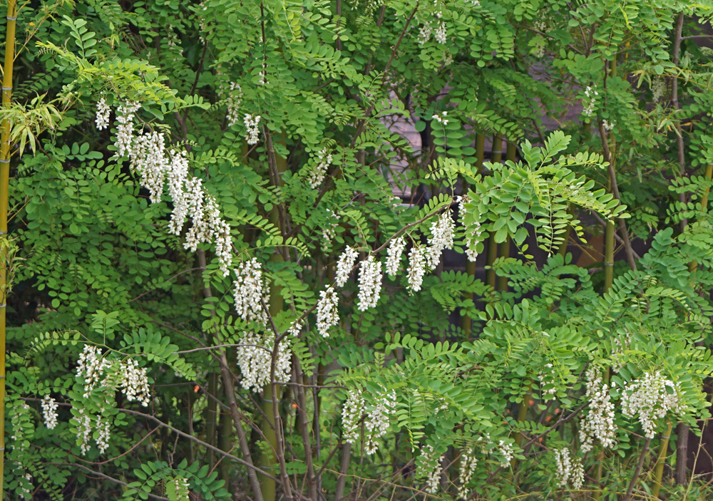 自宅東側の空き地で、ハリエンジュが花穂をたくさん下げて。 窓からよく見えてます。