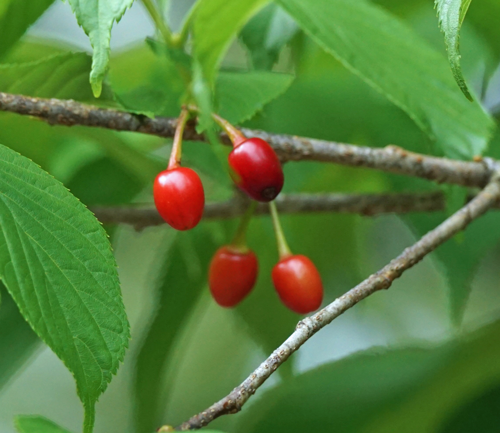 小さな実ですが、カンヒザクラの実も真っ赤に。 食べてみたことがないのですが、色だけ見ると美味しそうです。