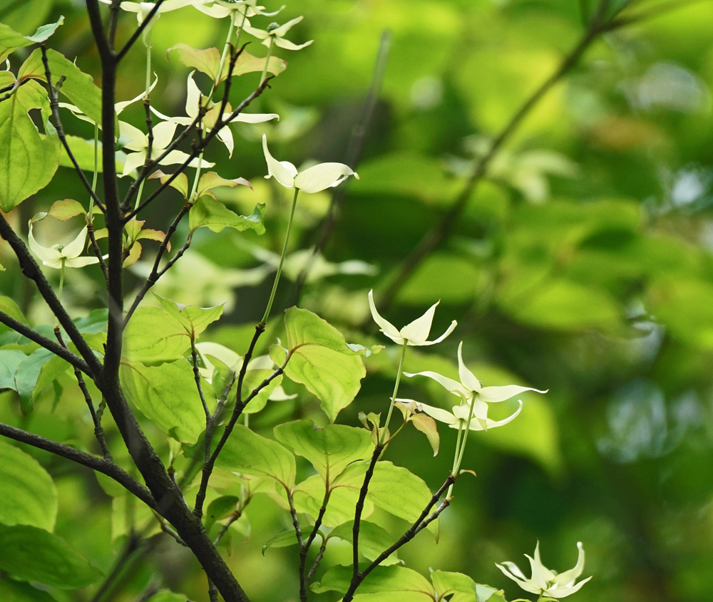 長久保 アカハラ、ウグイス、ヤマボウシ、エゴノキ、など